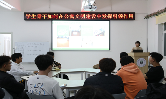 她强调,学生骨干做到以下几点:一是要坚持正确的价值观,以身做则,率先垂范,树立良好的学生骨干形象,在公寓文明建设中立标杆,做表率;二是要主动了解公寓基本情况及存在安全隐患,做好上传下达的沟通桥梁;三是要培养沟通协调能力,广泛收集意见、建议及时沟通,协助化解寝室矛盾。关注同学们的生活需求,提升同学们生活的幸福感和满意度,让公寓管理更加科学化、人性化。