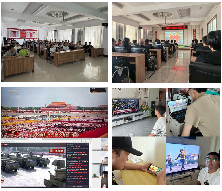 学院将310会议室设为集中观看区域,师生们提前抵达现场,静静等候直播开启。直播期间,大家目光始终聚焦屏幕,认真聆听总书记的每字每句。当受阅队伍迈着稳健步伐走过广场时,现场不时响起热烈掌声。此外,学院还通过班级群、党支部群等渠道,提醒未能到场的师生通过手机客户端、网络平台等方式自主收看。