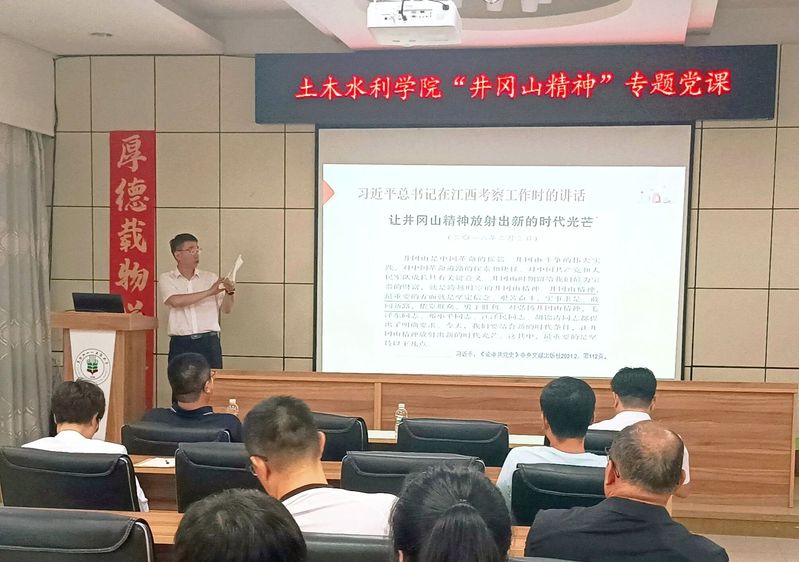 为常态化推进党史学习教育,持续强化能力作风建设,9月5日,外围买球app十大平台官网院长郑鑫结合8月下旬赴井冈山培训成果,以“传承井冈山精神,推动高质量发展”为主题,为全体教职工讲授专题党课。