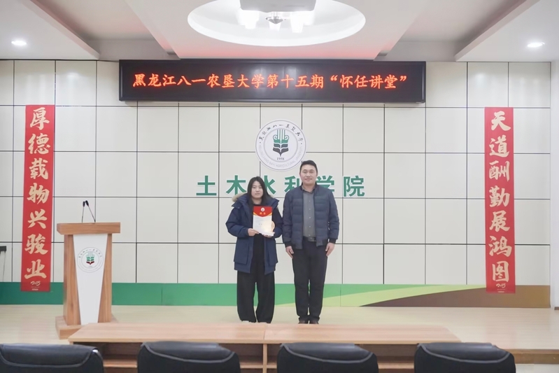 分享环节中,门佳美结合自身求学与职场奋斗经历,围绕行业发展趋势、职业生涯规划、核心能力提升等关键话题进行了分享。她以生动的案例和真挚的感悟,讲述了从校园到社会的转变与成长,为在校生提供了宝贵的借鉴与启发。在互动环节中,同学们踊跃提问,门佳美均给予了细致耐心解答。最后,将天宇为门佳美颁发了“怀任讲师”聘书,赠送了校园文创纪念品,以表达对校友的衷心感谢和敬意。